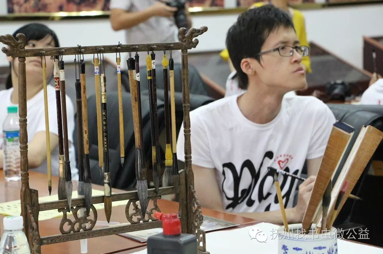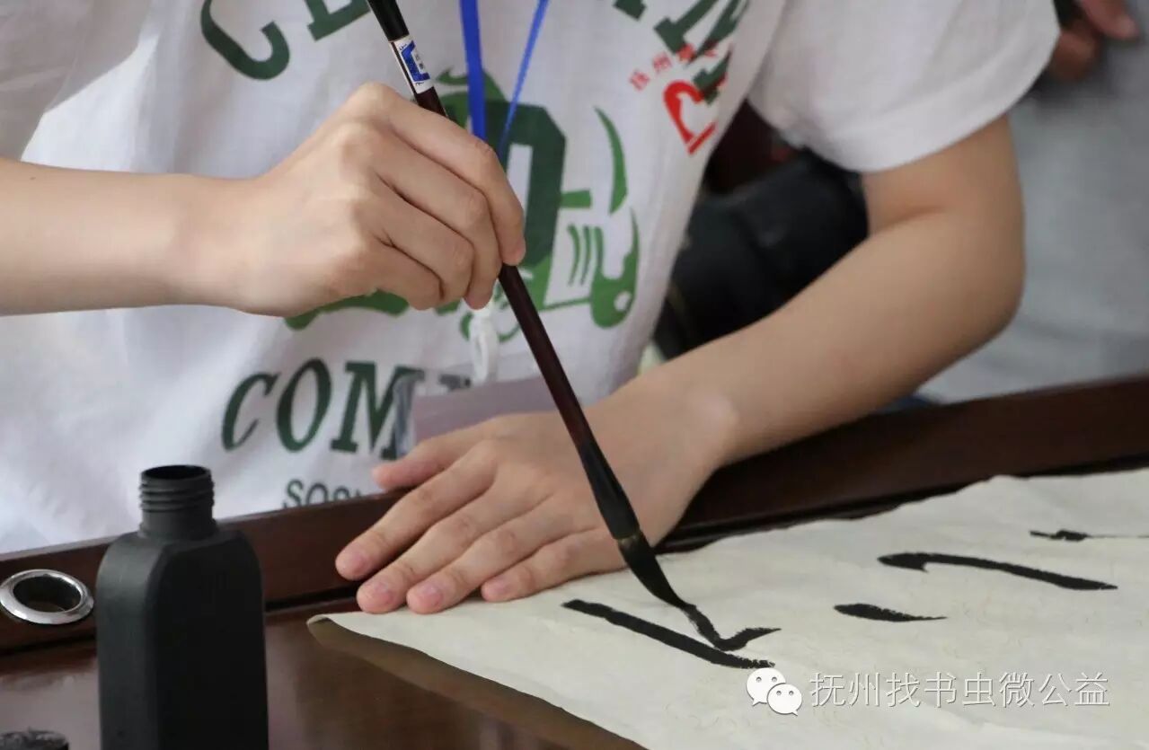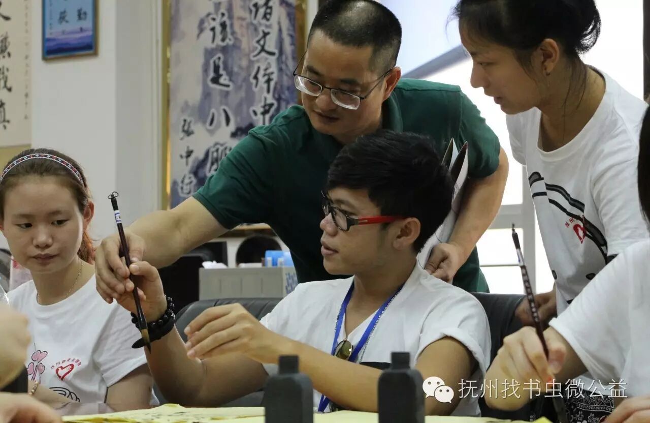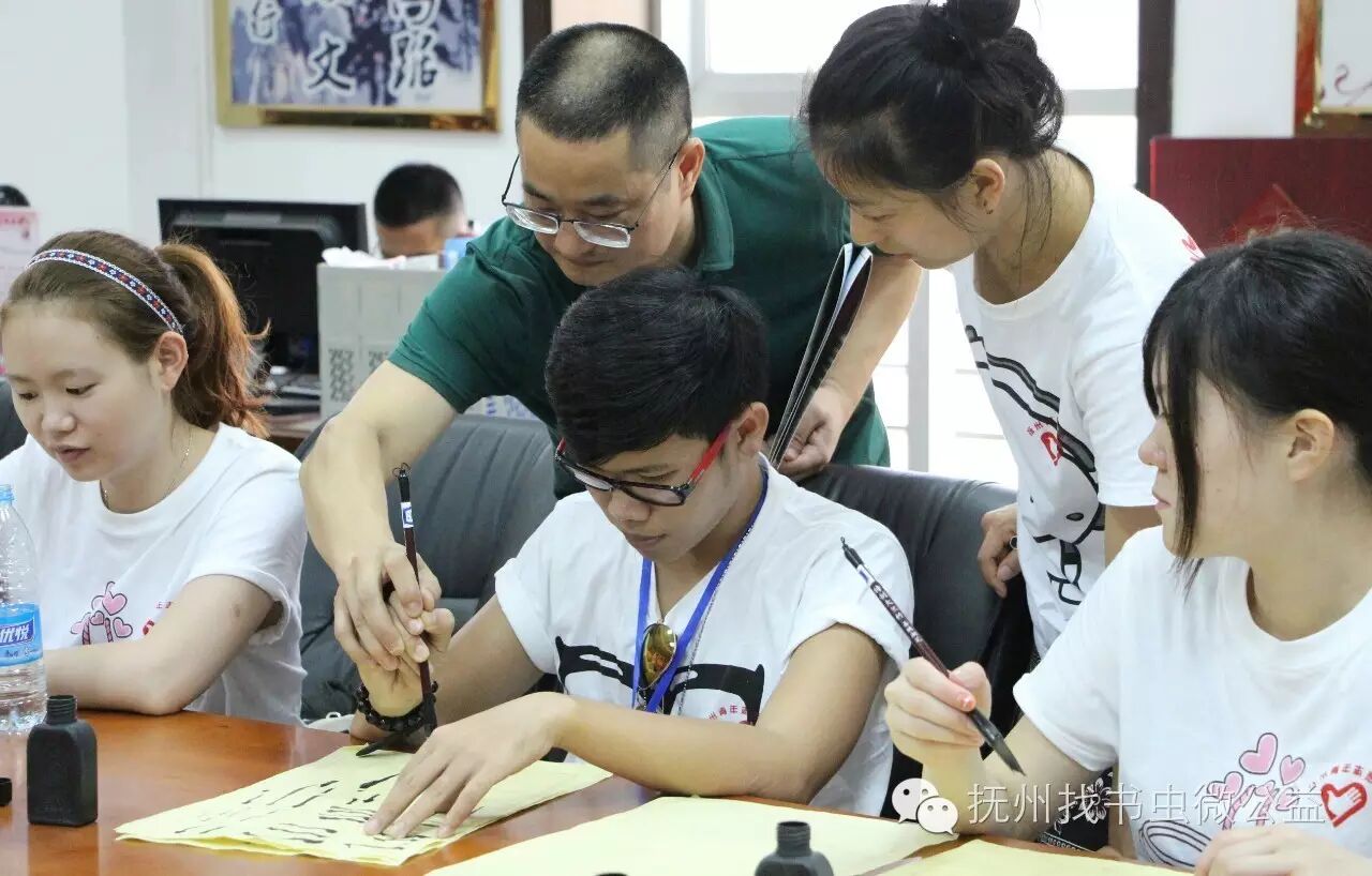 7月8日上午,志願者們來到了市圖書館,和青年書法家吳樂新慢慢體會、領悟書法的唯美意境。