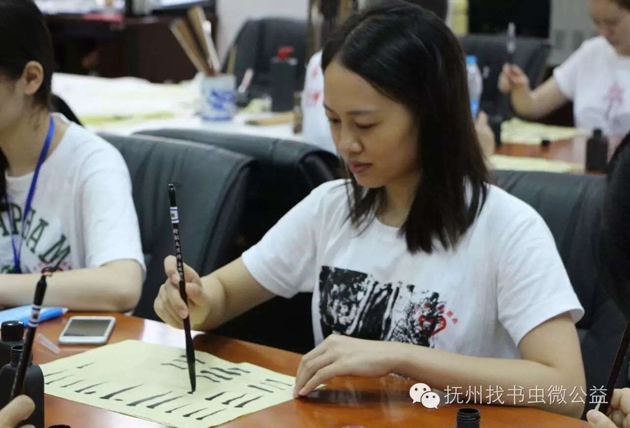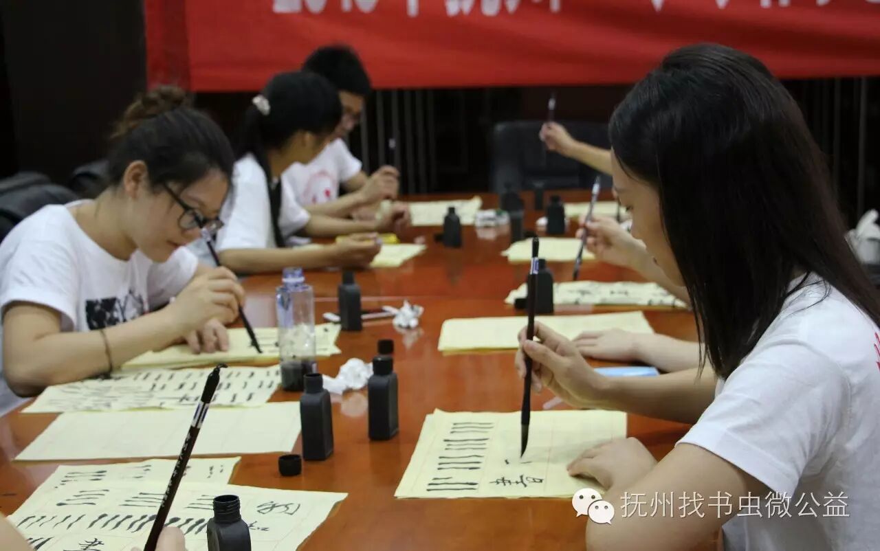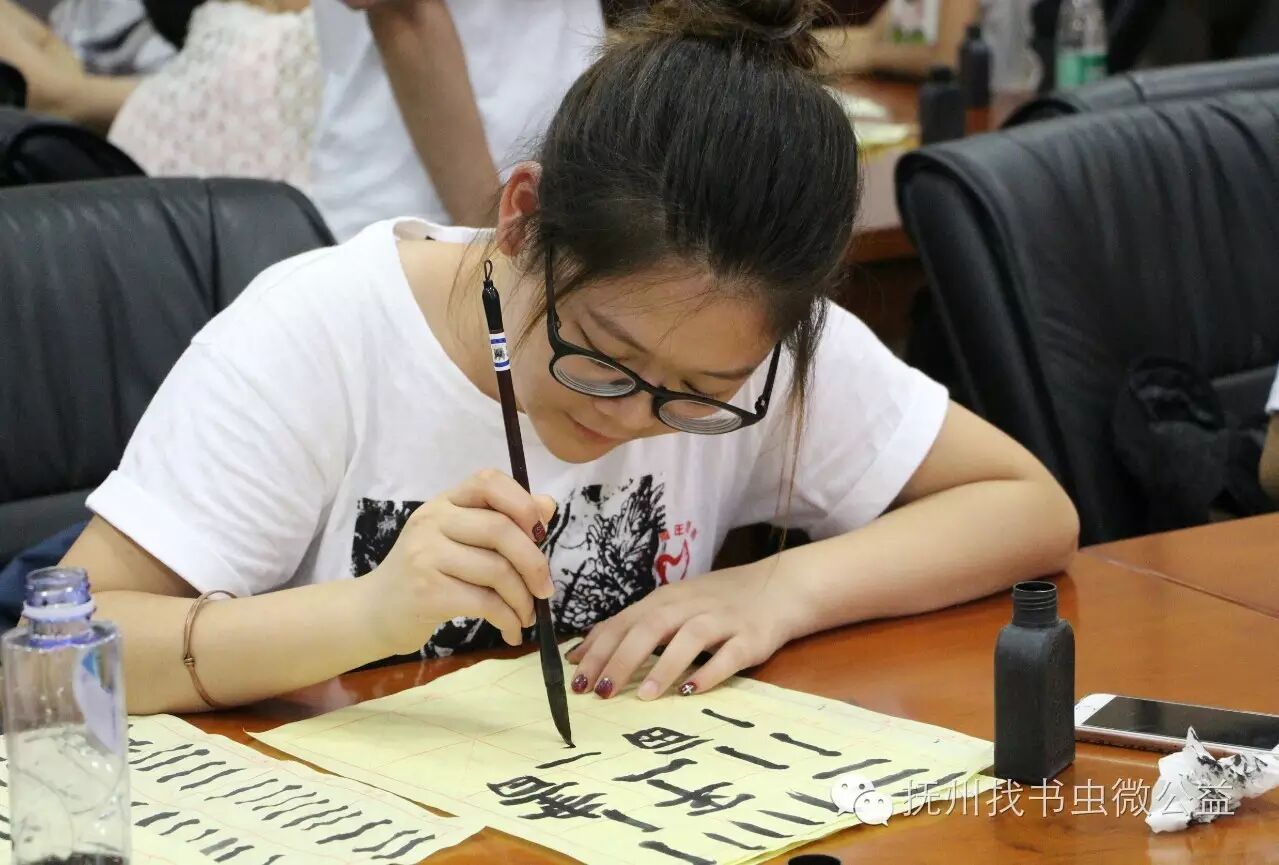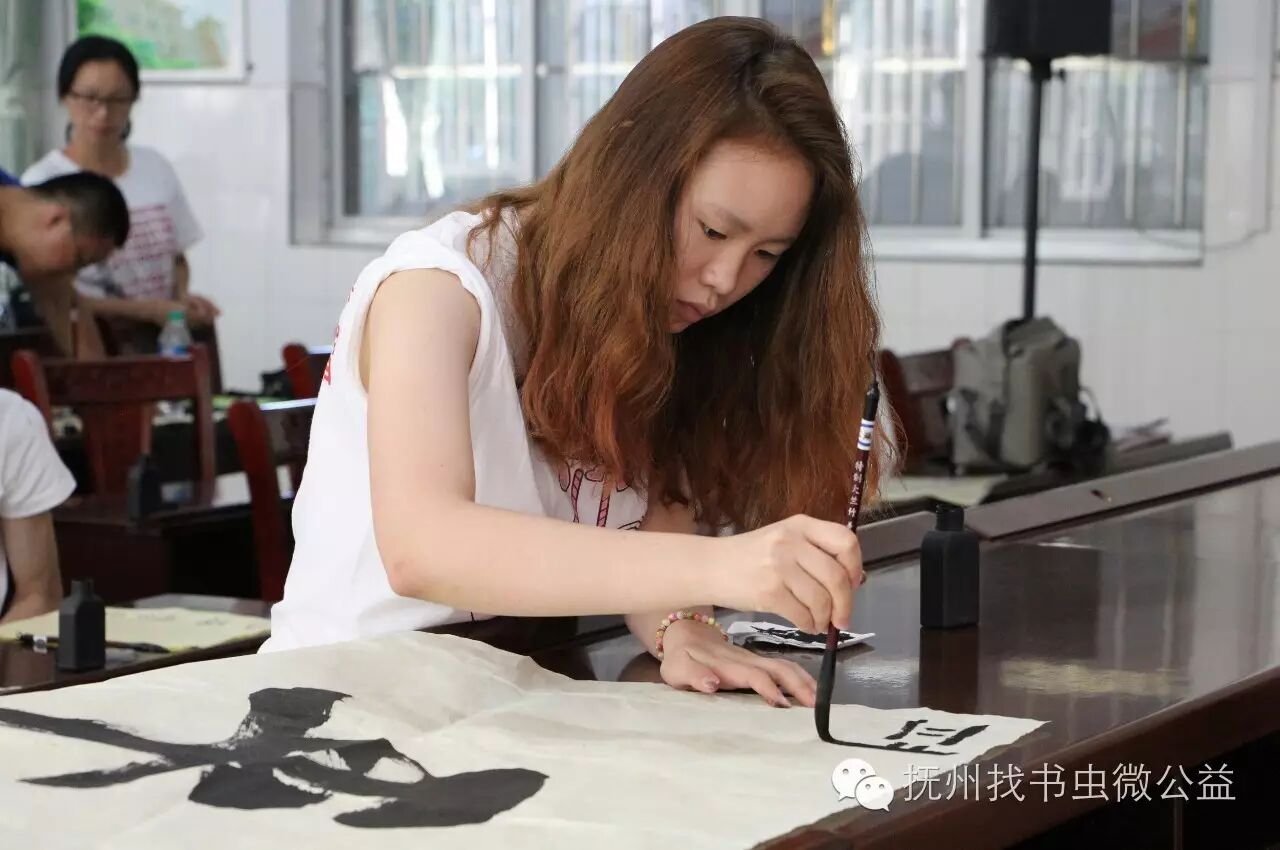 7月8日上午,志願者們來到了市圖書館,和青年書法家吳樂新慢慢體會、領悟書法的唯美意境。
