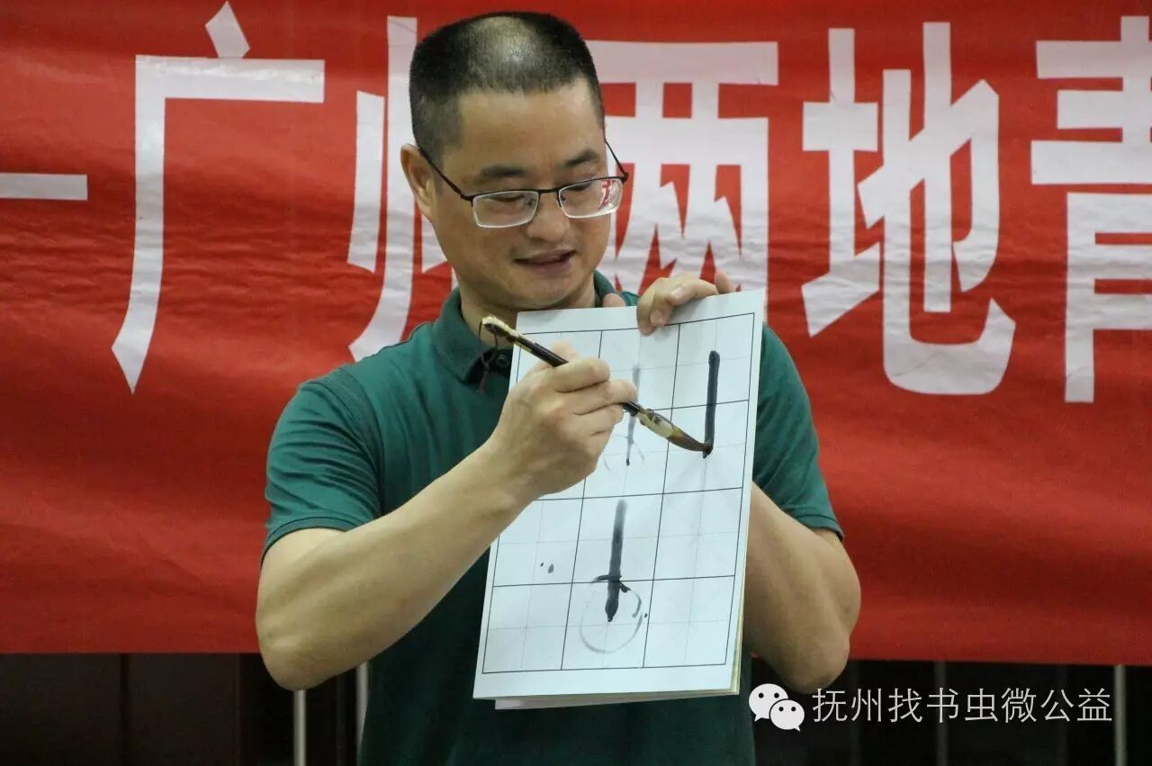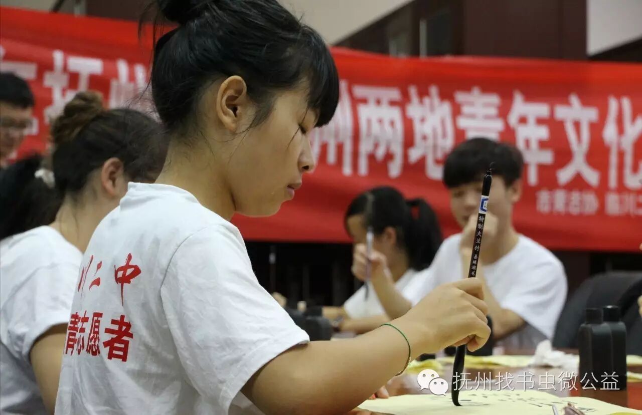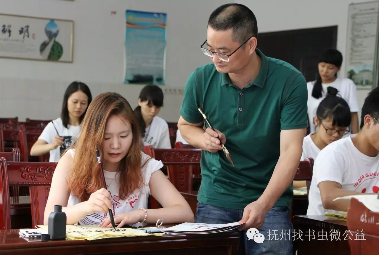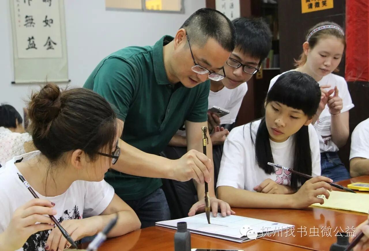 7月8日上午,志願者們來到了市圖書館,和青年書法家吳樂新慢慢體會、領悟書法的唯美意境。